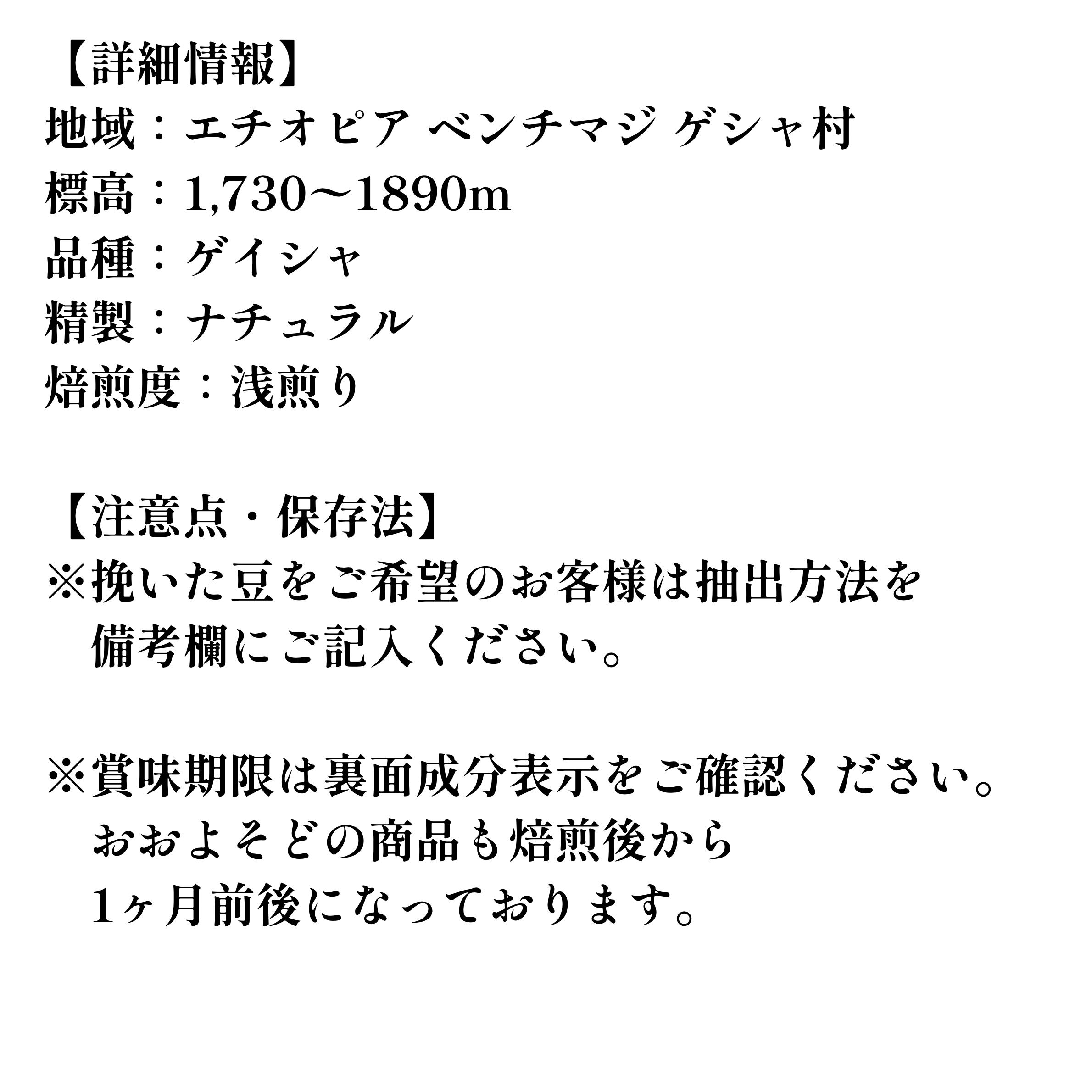 【紅茶のような余韻】エチオピア ゲイシャ / 蜂蜜レモンティーの風味 100g