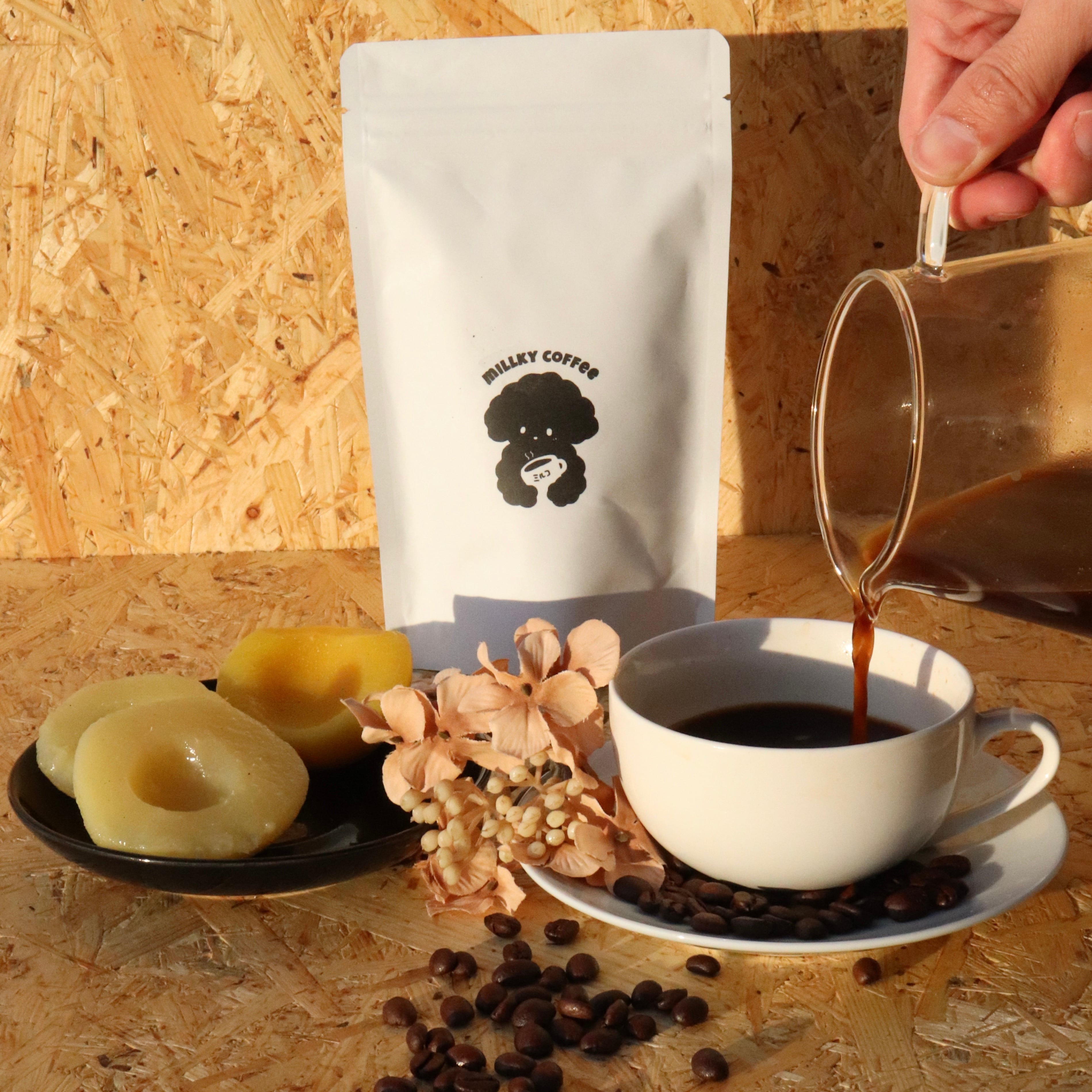 Millky Coffeeが誇る定番のブレンドコーヒー。モカを主体にブレンドし、ジャスミンのような甘みのある華やかな香りがふわっと広がります。しっかりとしたコクと、心地よい甘みのバランスが絶妙な一杯。
